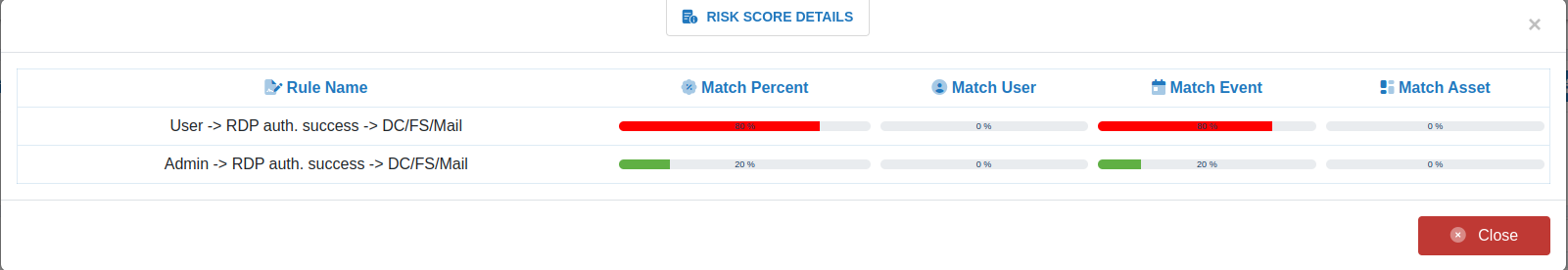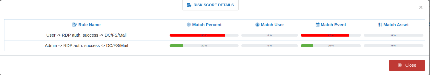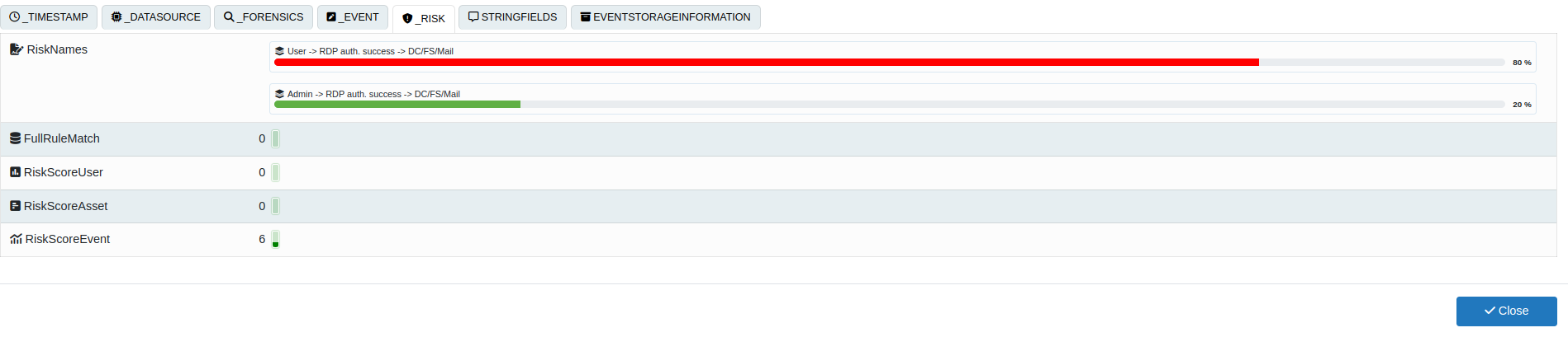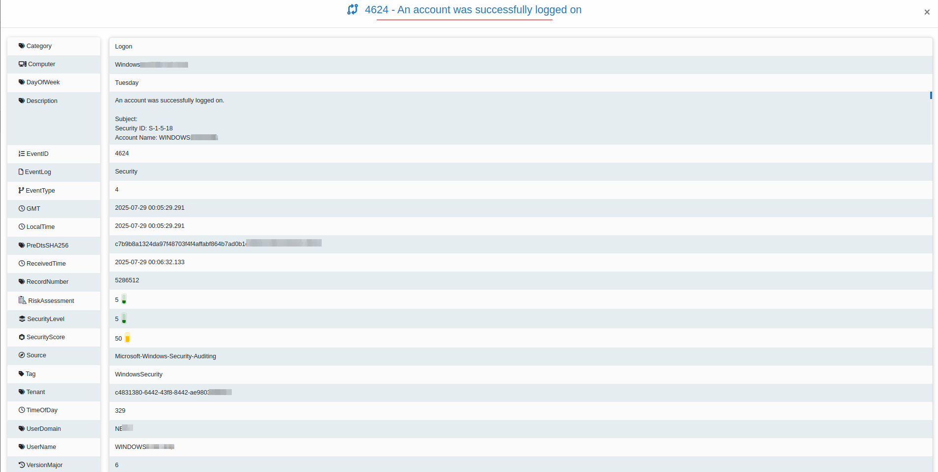 4 - Events are evaluated using predefined detection rules or behavioral patterns. Each matching event is assigned a risk score based on its severity and context.