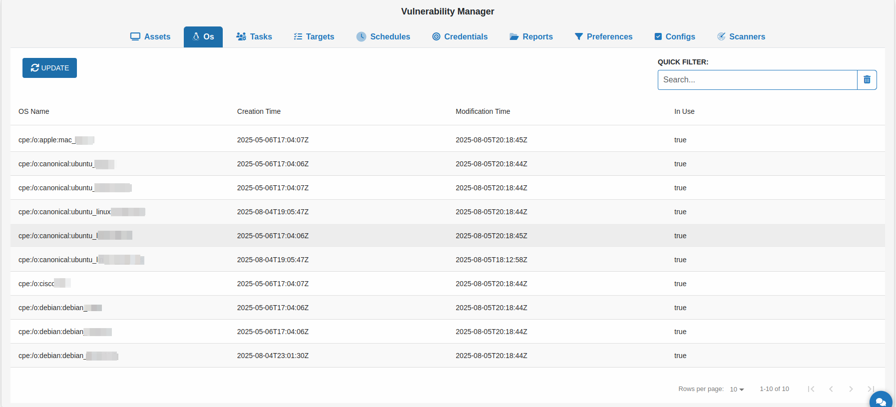 The Update button refreshes the Scanners page to ensure the latest data is shown.