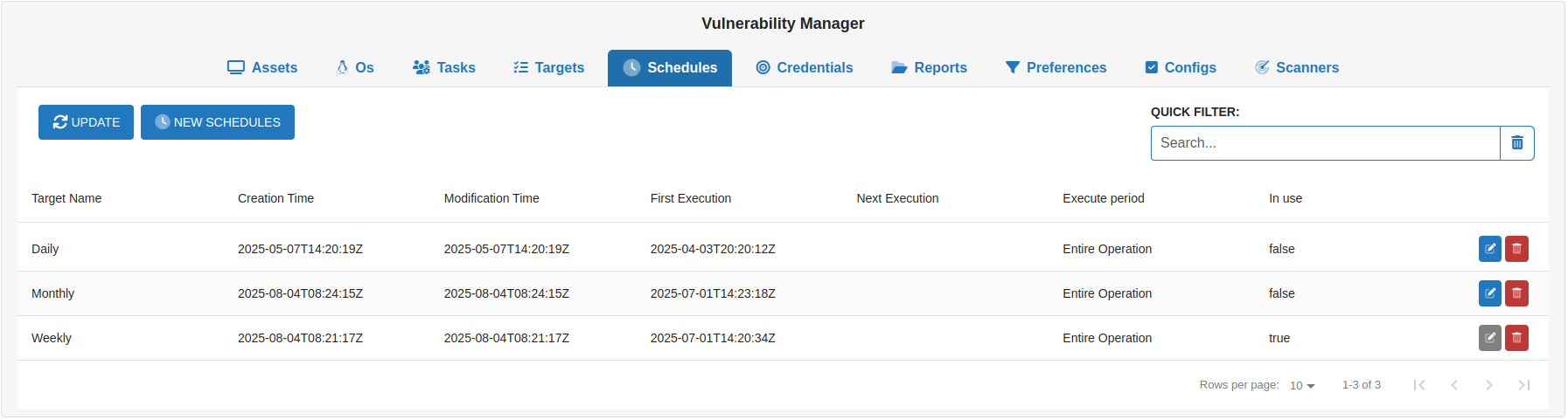 Edit schedules: Modify existing schedule configurations through the edit icon