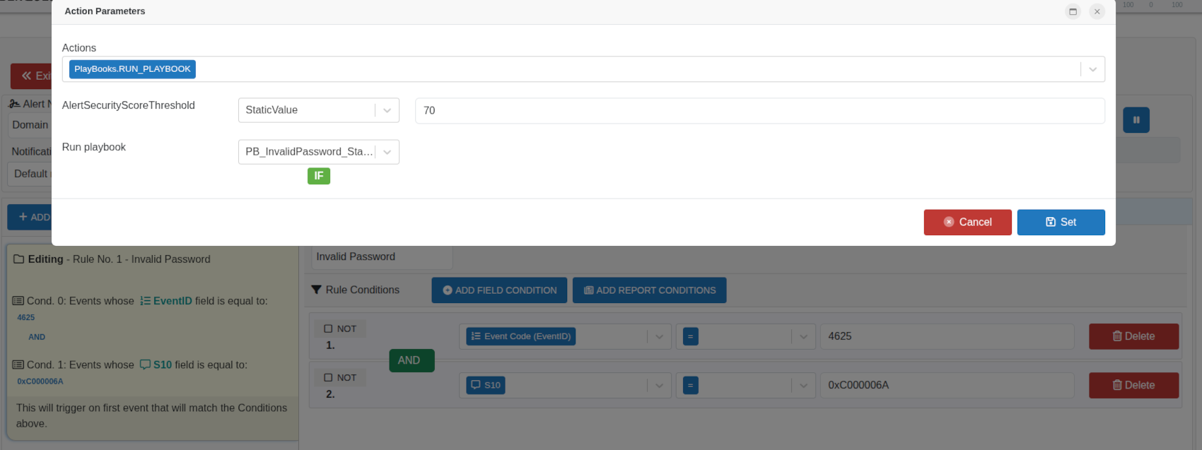 3.Select the PlayBooks.PLAYBOOK parameter and choose the playbook to associate with the alert